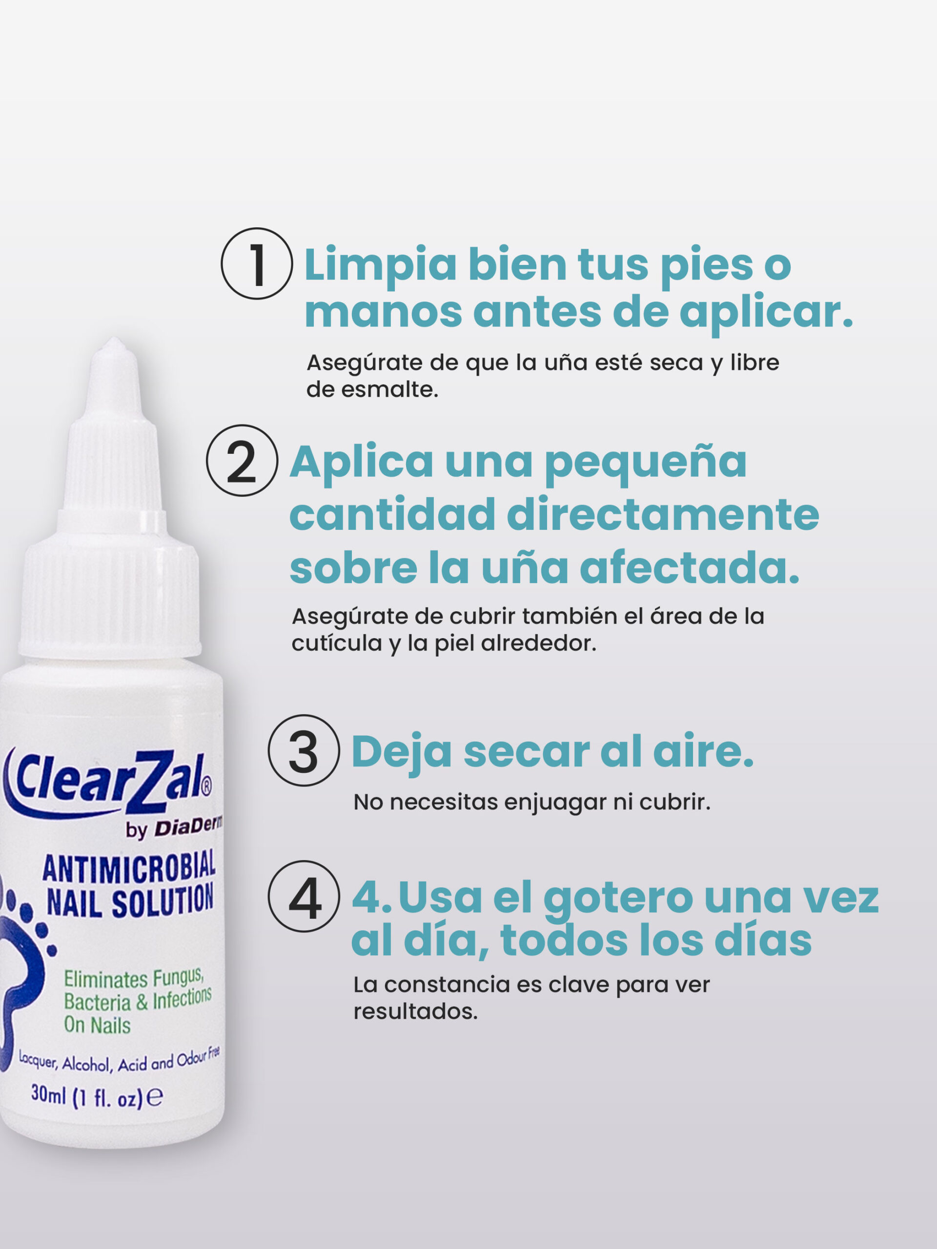 ¿Tienes hongos en las uñas o infecciones que no desaparecen? ClearZal Gotero BAC está diseñado para ayudarte a recuperar la salud y apariencia natural de tus uñas. Es una solución eficaz contra hongos, bacterias y virus, con ingredientes que cuidan y protegen.