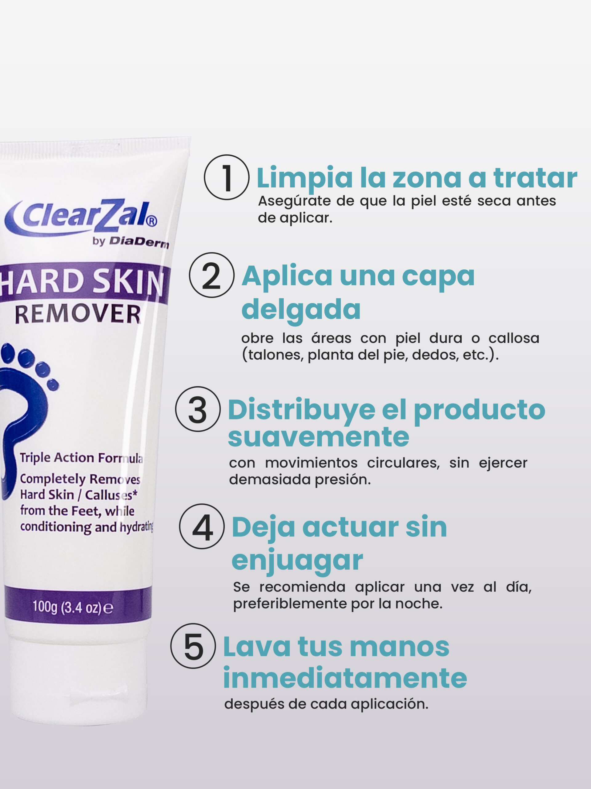 Fórmula dermatológicamente probada con Urea y Ácido Salicílico, diseñada para remover callosidades y piel muerta sin dañar la piel sana. Ideal para suavizar zonas ásperas, prevenir grietas y mantener los pies lisos, especialmente en personas con pie diabético.